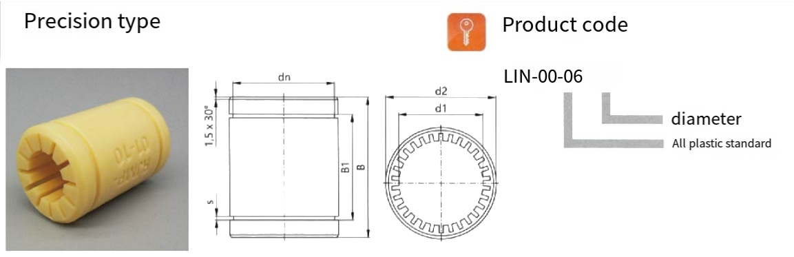 Łożysko precyzyjne HZ-LIN, zaprojektowane z myślą o bardzo precyzyjnych zespołach, charakteryzuje się wyjątkowo niskimi tolerancjami wymiarowymi (± 0,02 mm) i gładkim wykończeniem otworu. Niska absorpcja wilgoci (<0,5%) zapewnia stabilność w środowiskach o kontrolowanej wilgotności, takich jak urządzenia medyczne, sprzęt optyczny lub robotyka.