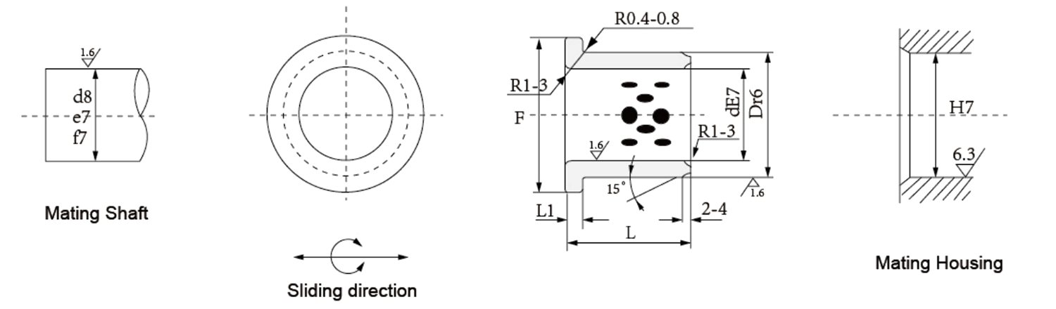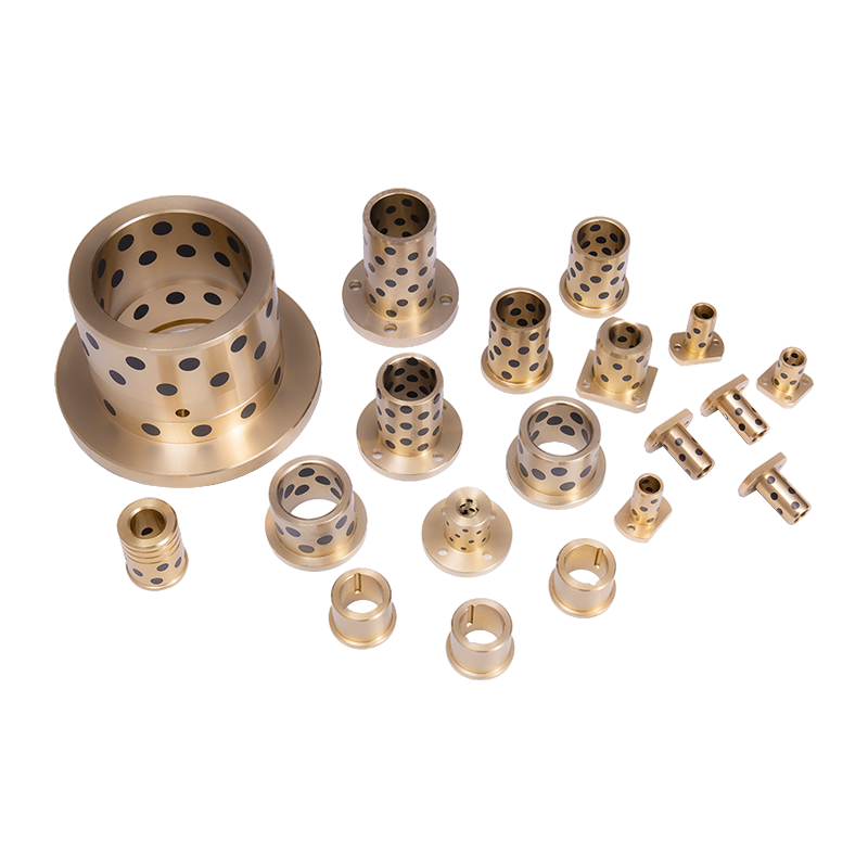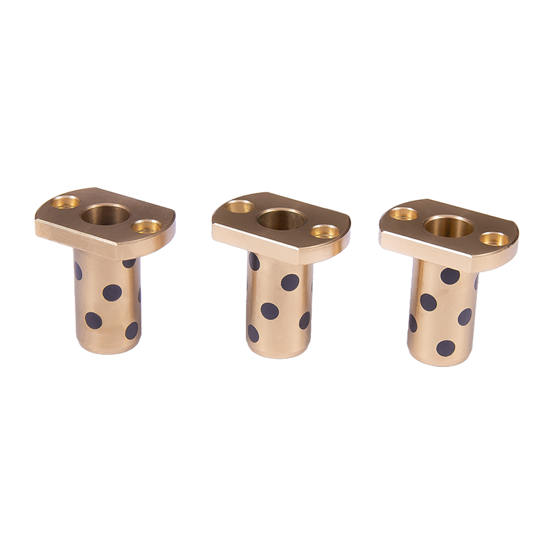 Tuleja grafitowo-miedziana z kołnierzem HZ-JFB zawiera osadzony grafit w celu samosmarowania w warunkach zapylenia, suchości lub wysokiej temperatury. Konstrukcja kołnierzowa zapobiega ruchom osiowym i upraszcza instalację w pompach, przenośnikach lub samochodowych zespołach kierowniczych. Matryca miedziano-grafitowa zmniejsza tarcie i zużycie, podczas gdy kołnierz poprawia rozkład obciążenia i dokładność wyrównania.